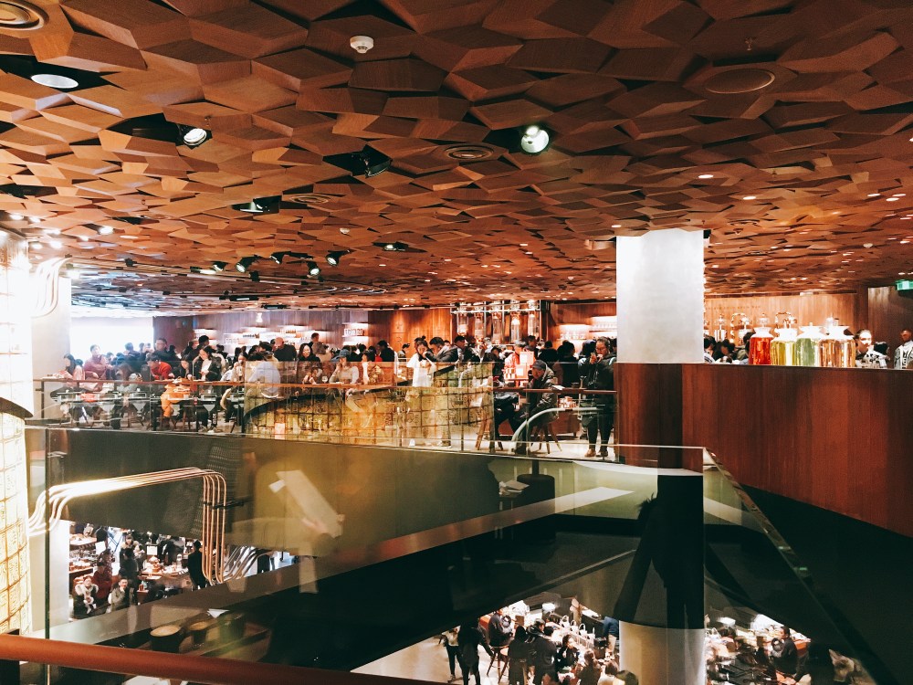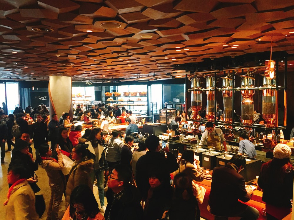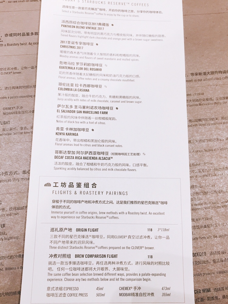 上海,这间在今年12月6日新开张,被誉为全世界最大的星巴克,世界第二家“星巴克精品烘培品尝室” Starbucks Reserve Roastery(第一家是在2014年开在西雅图,要不是这上海世界最大的噱头,像我这种对咖啡没啥研究,对星巴克也只是拿起杯子上写我的名字,拍个照📷装文艺的假文青之外,有谁会懂星巴克除了Latte, Java Chip, Frappuccino这些,星巴克还有精品咖啡,而且是早在2014年)