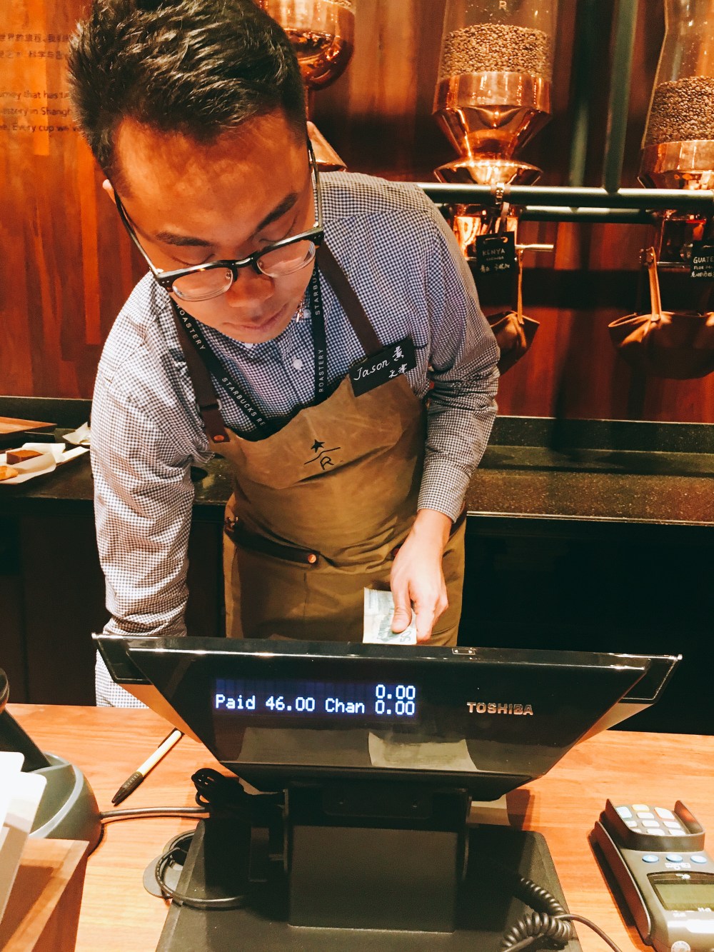由于队伍真心长,柜台就只有两个,所以这些帅小哥哥们就出来帮我们快速点单。兴致勃勃点完他问我用微信支付还是信用卡之类的时候,我就小懵了一下~我这旅客只有现金啊!然后就一脸抱歉的跟他说我付现金~