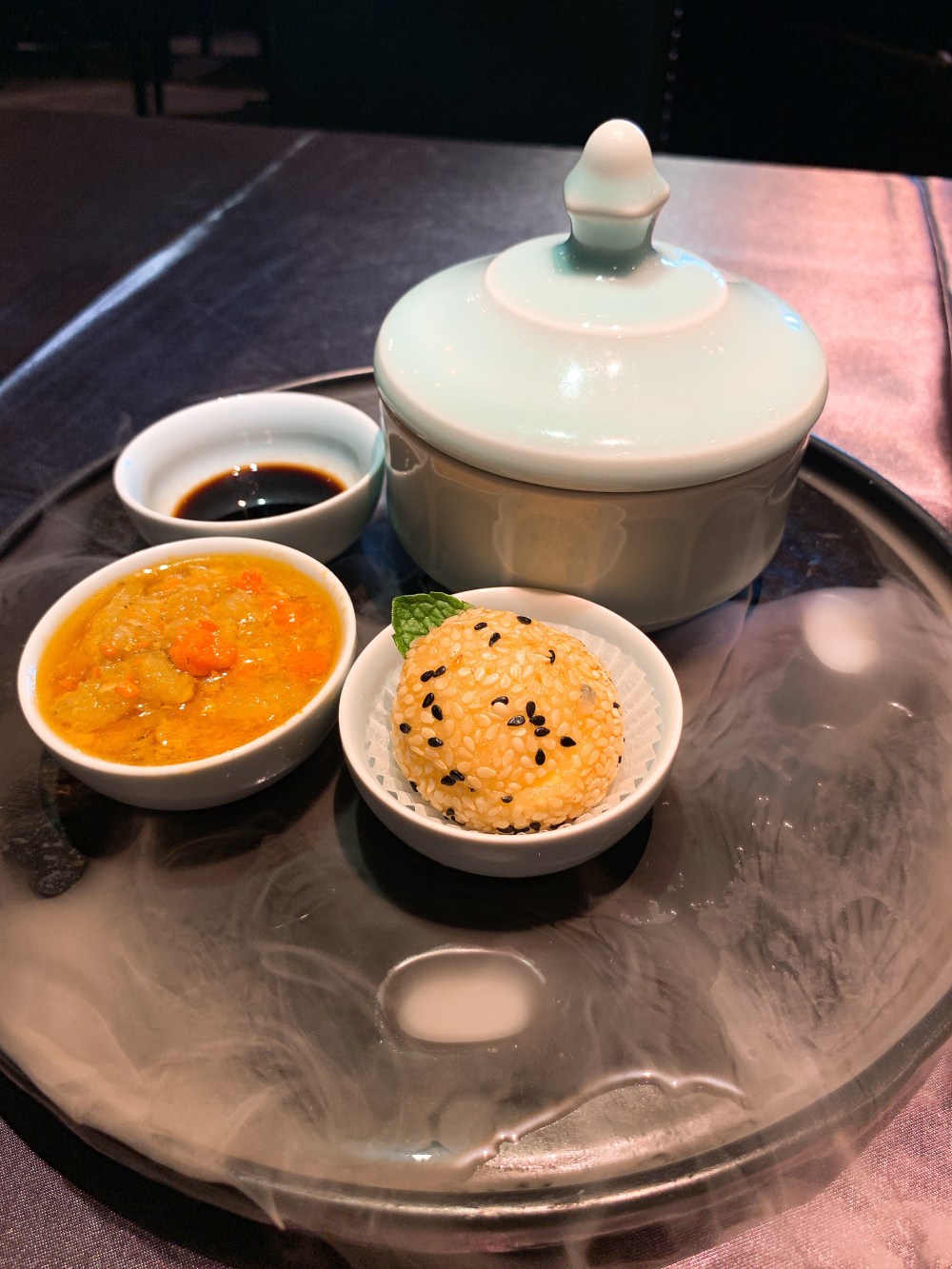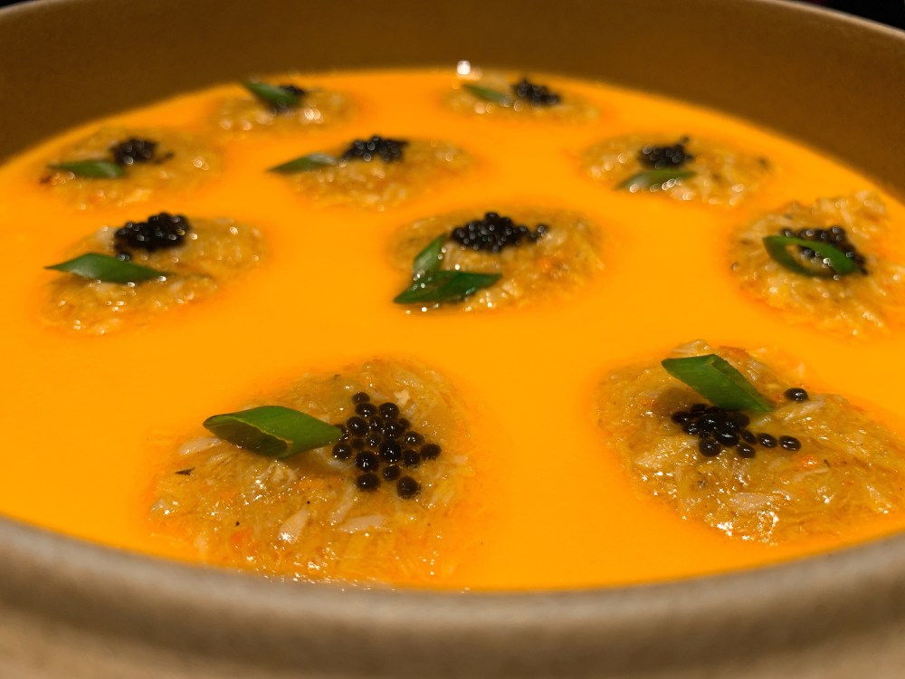 这一道是唯一一道我摸不着头绪的一道菜,没特点,蟹粉与橙味的结合也没什么惊喜。是一道我觉得不会再想吃也不会怀念的一道菜